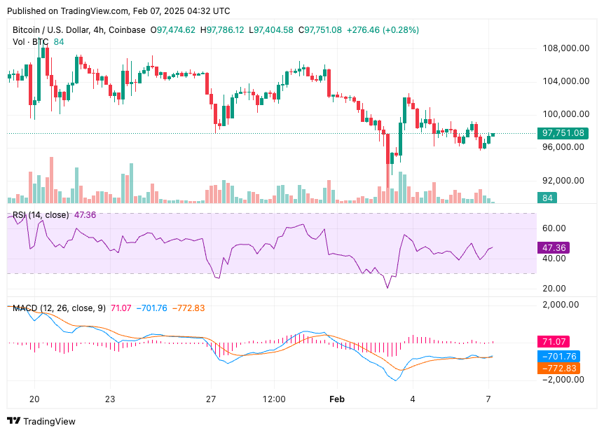 Bitcoin (BTC) 4H Chart – Price Stabilizes Around $97,751 on February 7, 2025. Source: TradingView