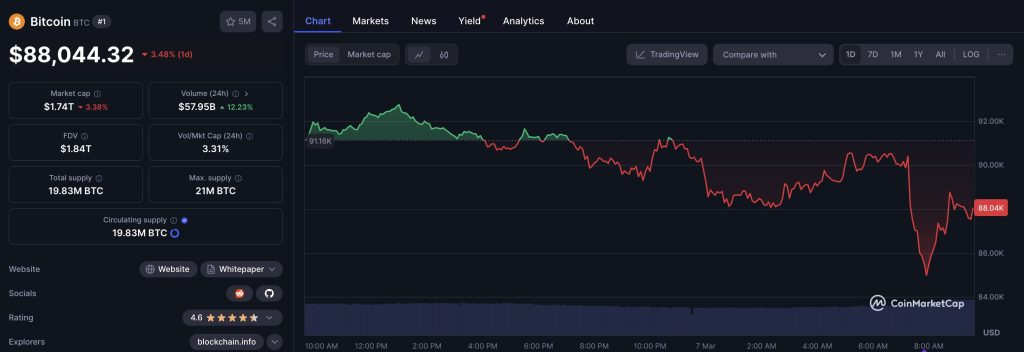 The move has triggered market volatility, with Bitcoin dropping about 3.5% to trade near $88,000. Other cryptocurrencies Trump intends to include in the reserve—Ether, XRP, Solana, and Cardano—also saw declines of at least 4%.