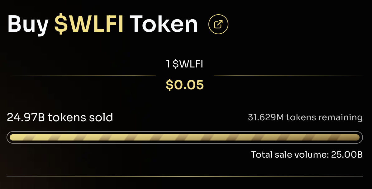 According to data on the project’s official website, World Liberty Financial has now sold a total of 24.97 billion WLFI tokens, accounting for about 99.3% out of the total 25 billion tokens allocated for the public sale.
