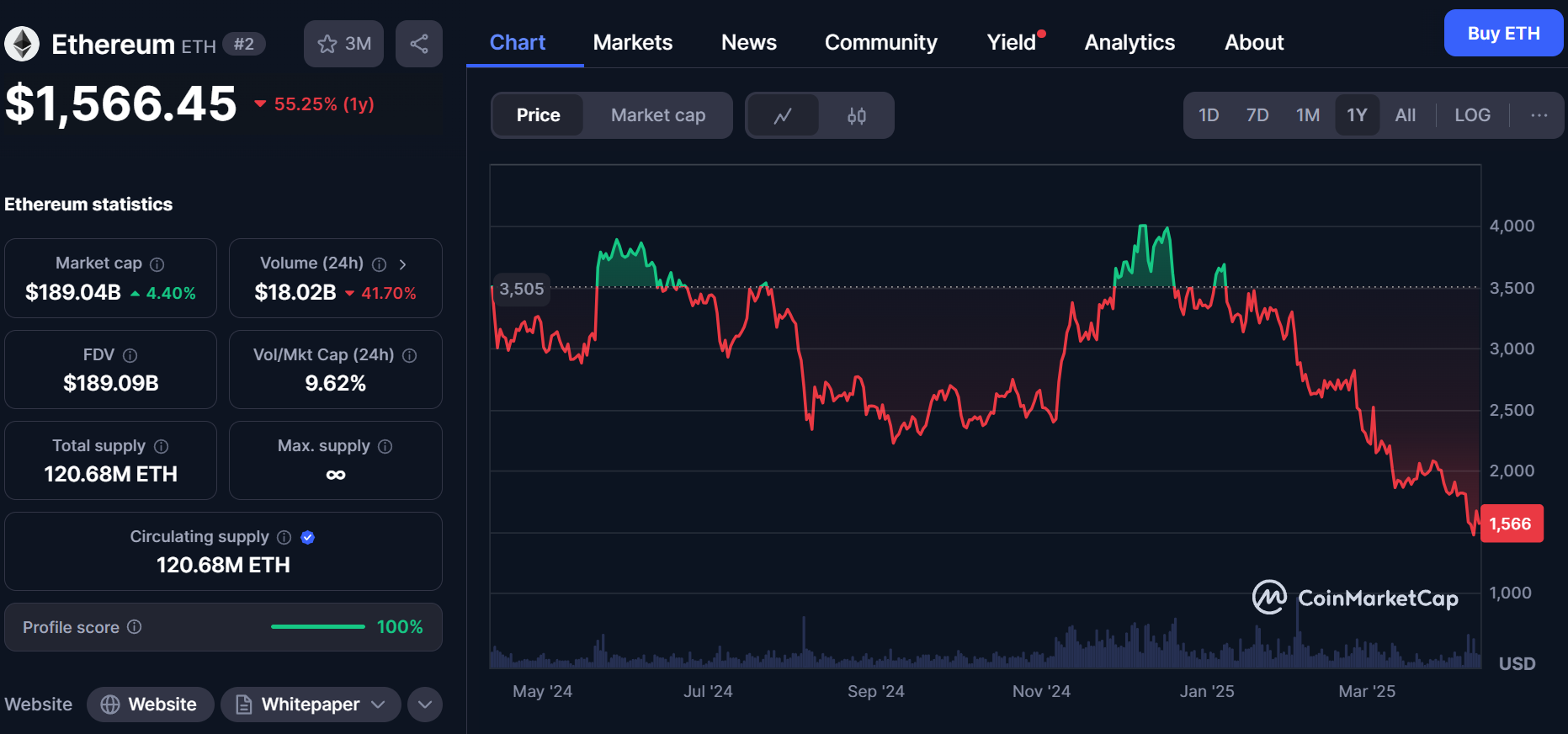 Over the past 12 months, Ethereum’s depreciation played a major role in this decline. The cryptocurrency has shed 57% of its value, exacerbating the seller’s losses in terms of ETH and USD.