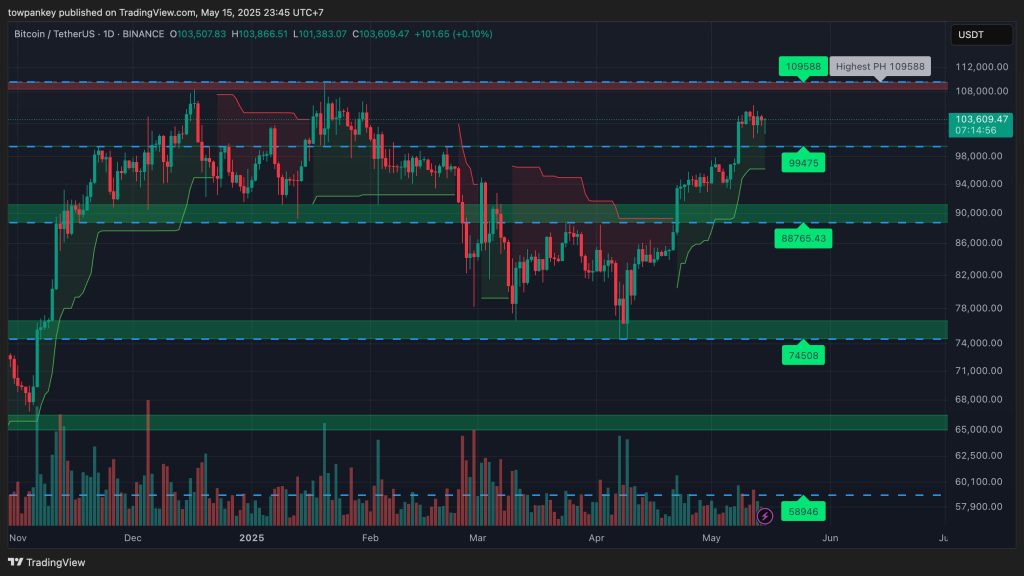 - Bearish: If support at $99,475 fails, look for a deeper correction toward $88,765 zone.