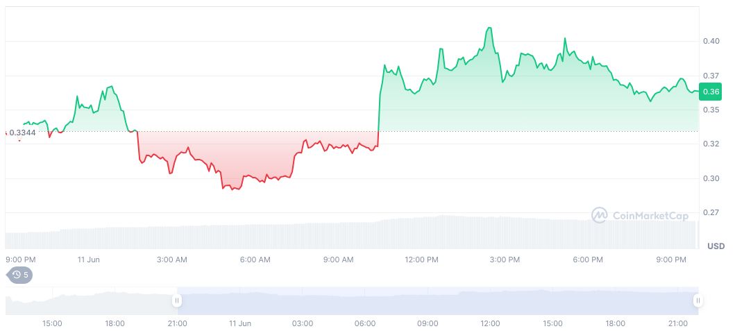 According to CoinMarketCap, Resolv (RESOLV) has an opening price of $0.37 with a market cap of approximately $56.99 million. Resolv’s fully diluted market cap is pegged at $365.90 million. Recent trading volumes saw a spike, increasing by 67.72%, with significant price increments like a 52.38% increase over extended periods.