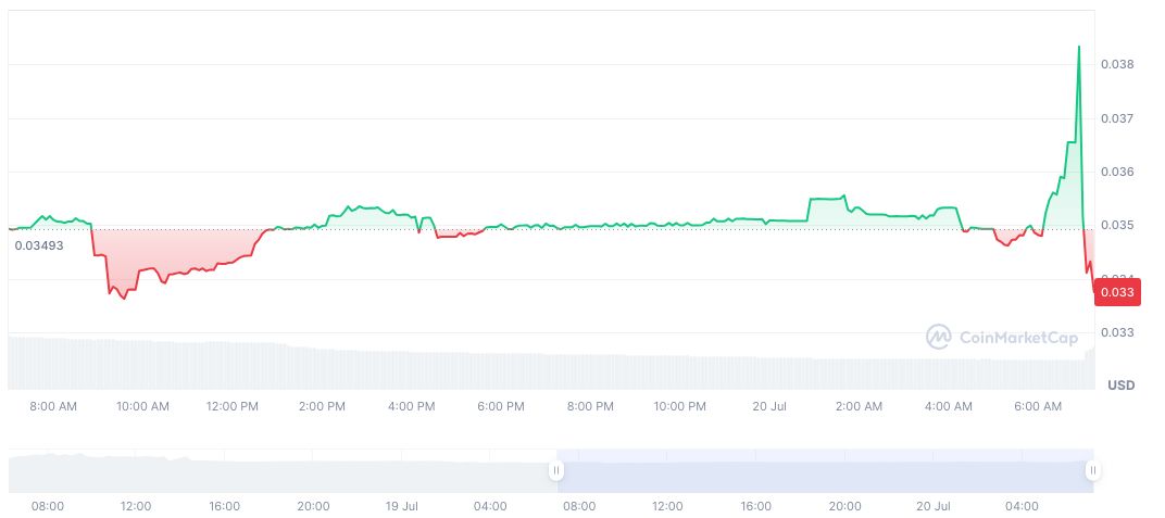 The UPTOP token has witnessed a 24-hour price drop of 3.62%, trading at $0.03 according to CoinMarketCap. Its 24-hour volume reached $12.12 million, while the total market cap is $7.07 million.