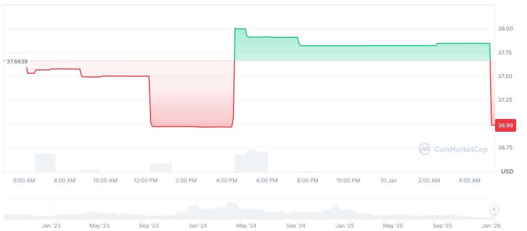 According to CoinMarketCap, the Colony Avalanche Index (CAI) currently trades at $36.98. With a fully diluted market cap of $1,711,108.84, the token has displayed a notable 90-day decline of 39.96%. The 24-hour trading volume shows a drop of 39.58%, standing at $163.50 as of January 10, 2026.