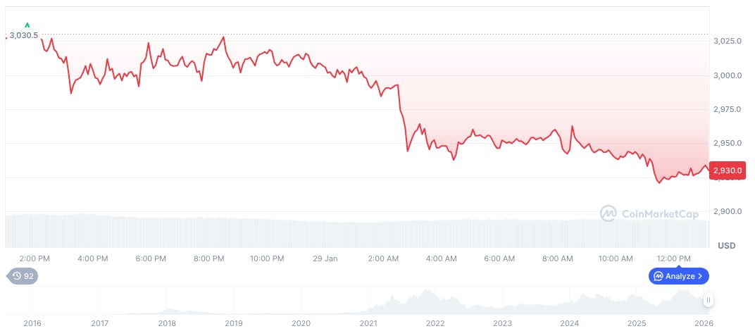 Ethereum(ETH), daily chart, screenshot on CoinMarketCap at 20:08 UTC on January 29, 2026. Source: CoinMarketCap