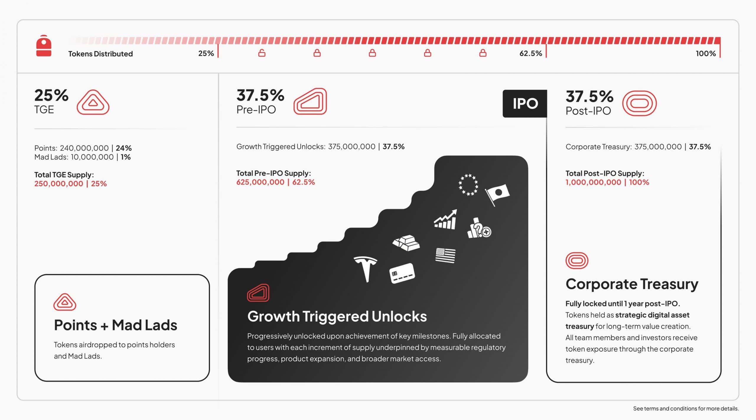 As of early 2026, the TGE timeline remains undisclosed. This delay is intentional, as token issuance is explicitly tied to regulatory readiness and operational maturity rather than market conditions.