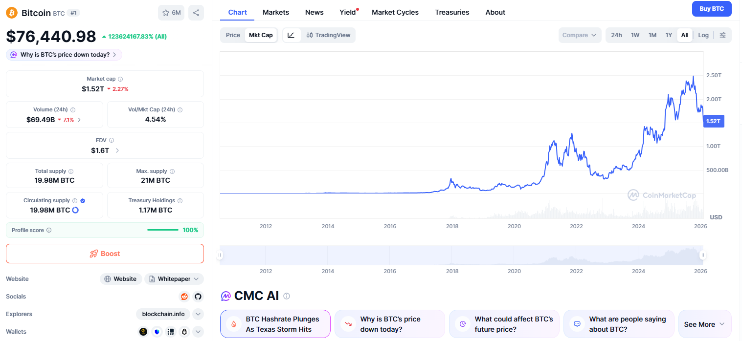 Bitcoin traded above $80,000 multiple times in late January before collapsing to $75,766 on February 1, 2026. The move wiped out all 2026 gains and shifted market structure into a bearish regime.