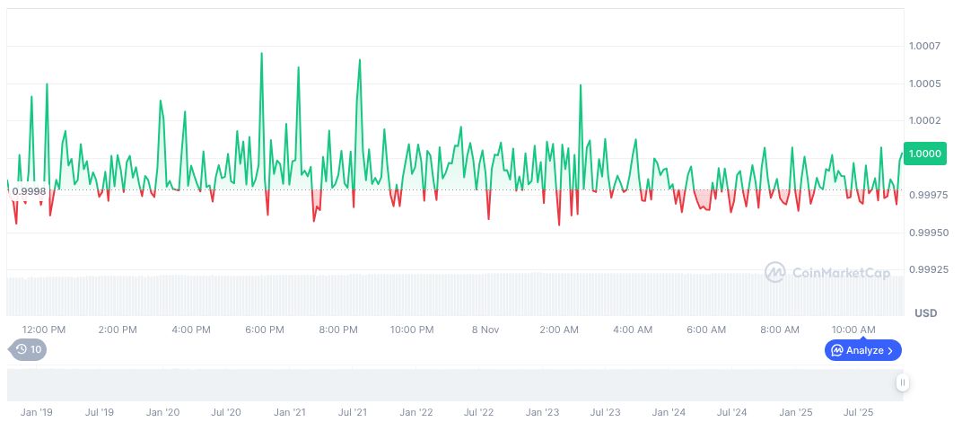 On November 8, 2025, USDC remains a widely circulated stablecoin with a market cap of $75.71 billion and a trading volume decline of 47.46%. Its stable price is noted at $1.00 with nearly steady demand over the past 90 days, as per CoinMarketCap data.