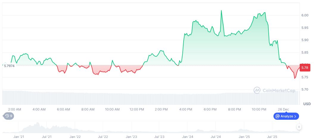 Uniswap (UNI) is trading at $5.93, with a market cap of approx. $3.74 billion, according to CoinMarketCap. Recent price changes include a 1.55% increase over 24 hours and a 20.37% rise over the past seven days.
