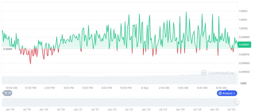 USDC(USDC), daily chart, screenshot on CoinMarketCap at 09:38 UTC on September 8, 2025. Source: CoinMarketCap