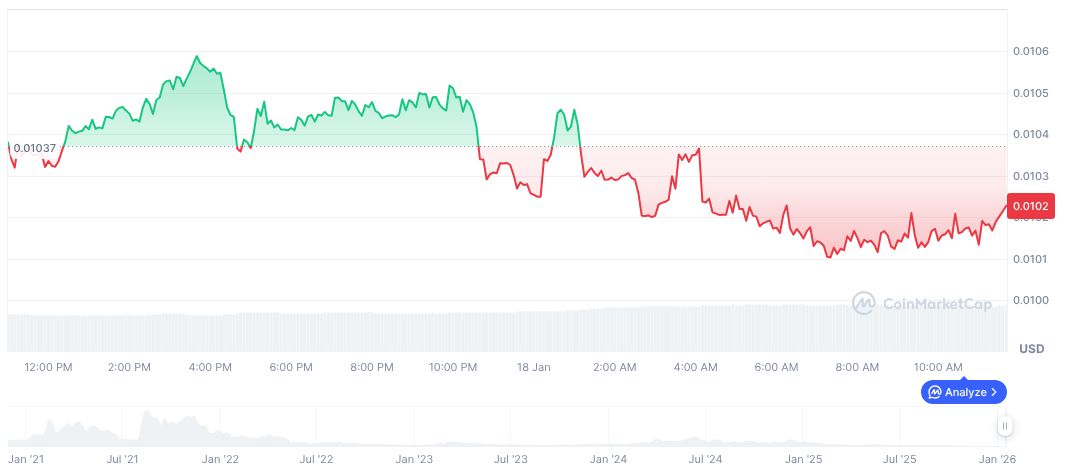 As of January 18, 2026, CoinMarketCap reports TrueFi (TRU) has a market cap of 14.02 million USD, with a current price of 0.01 USD. Despite a 22.80% growth over 30 days, TRU’s price fell 53.40% over 90 days.