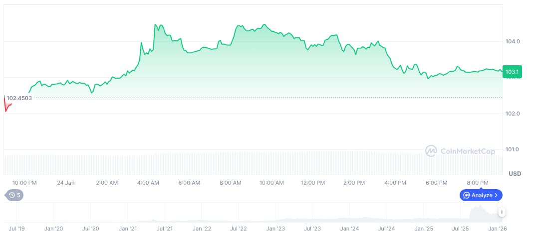 OKB currently stands at $103.20 with a market cap of $2.17 billion, according to CoinMarketCap. The trading volume reached $13.89 million in the past day, declining by 5.26%. Over three months, OKB experienced a 38.63% price decrease, demonstrating volatility. The token’s circulating supply is pegged at 21 million.