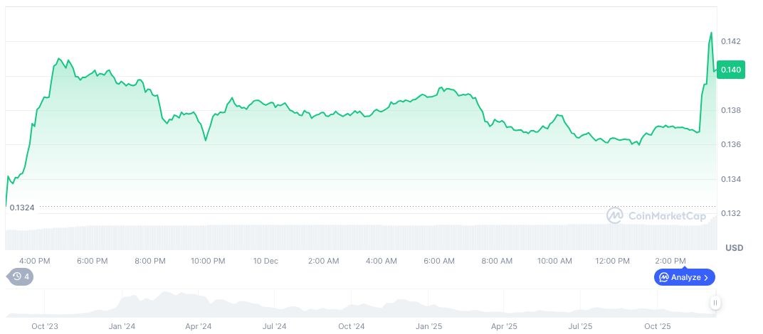 As of December 10, 2025, Sei (SEI) is priced at $0.14 with a market cap of $896.72 million, boasting a 24-hour trading volume of $93.85 million, according to CoinMarketCap. Recent price changes reflect a 24-hour increase of 4.67%, a seven-day growth of 3.05%, though it has declined by 56.09% over the past 90 days.