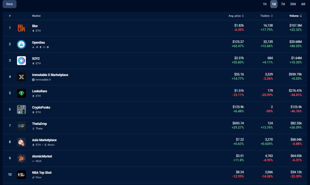 Published February 20, 2023 at 1308 × 782 in Blur Surpassed OpenSea In NFT Trading Volume With $400 Million In Just 1 Week