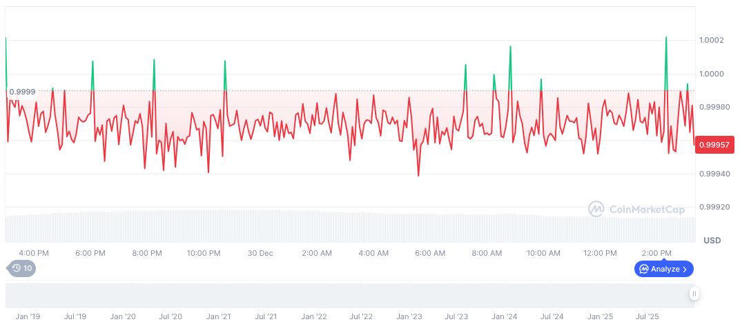 According to CoinMarketCap, USDC maintains a consistent price at $1.00, with the market cap reaching $75.94 billion. Its market dominance stands at 2.54%, as the 24-hour trading volume dipped by 12.78%. Meanwhile, USDC’s price has suffered minimal fluctuations over the past three months.