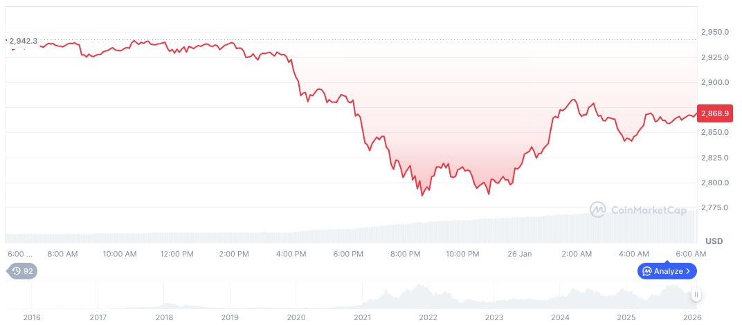 Ethereum’s current market conditions present a mixed picture, with its price at $2,934.96 and a market cap of $354.23 billion, reflecting an 11.85% market dominance, as per CoinMarketCap. It experienced a 2.52% increase over 24 hours but recorded a 7.29% decline over the past week. Despite minor fluctuations, experts remain optimistic about its trajectory due to strong fundamentals.