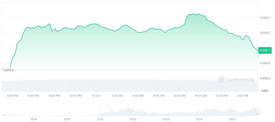According to CoinMarketCap, Wrapped Ethereum (WETH) holds a market cap of $13.65 billion with prices at $4,043.14. Despite a 90-day rise of 18.36%, recent trends show a drop of 9.43% over seven days, influencing Ethereum Layer 2 dynamics.