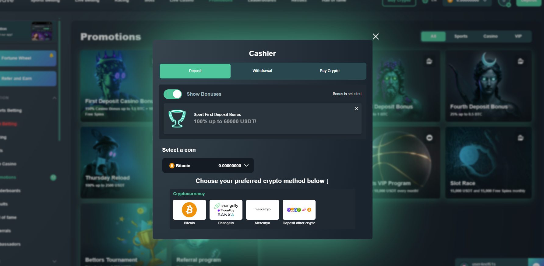 Wheel of Fortune incorporates an extra splash of excitement since three distinct wheels contain varying rewards. Bronze is rewarded on registration, Silver for deposits of 100 USDT or more, and Gold for deposits of 500 USDT or more. The bonuses for each deposit can be obtained by players, but there is a limitation of three bonuses of each type per day.