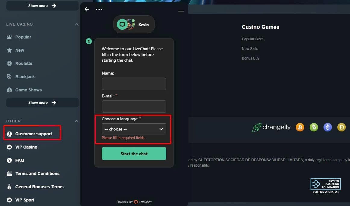 Vave offers 24/7 customer support via live chat and email whereby the players can be attended to at any time. The live chat is provided in all languages apart from Dutch, Japanese, Swedish, and Estonian, whereas email support is provided in a few languages like English, German, Spanish, and more.
