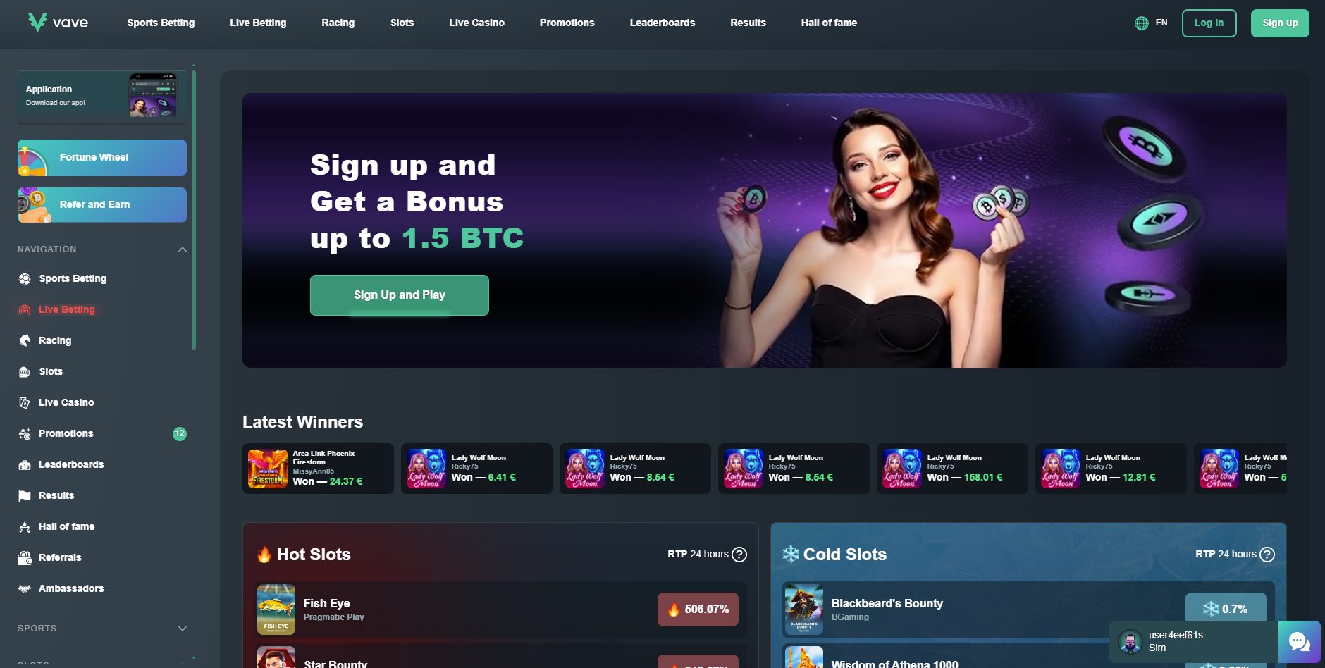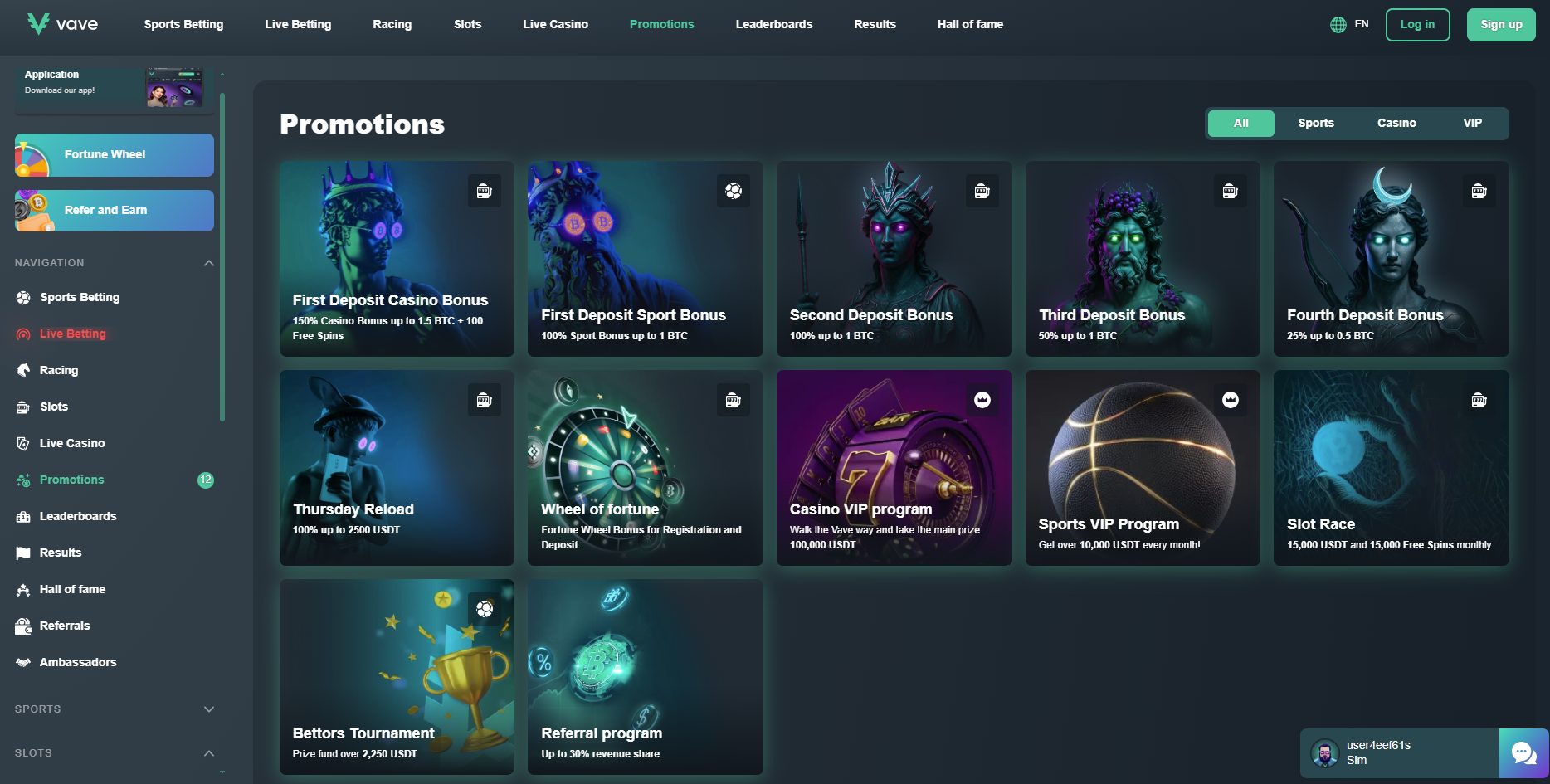 Players can interact in real-time with pro dealers in the live casino area, which offers an authentic gaming experience. Vave also offers virtual sports for players interested in virtual betting, where users can bet on basketball, football, and other sports in simulation. The website offers betting for mainstream competitions and teams in eSports as well.