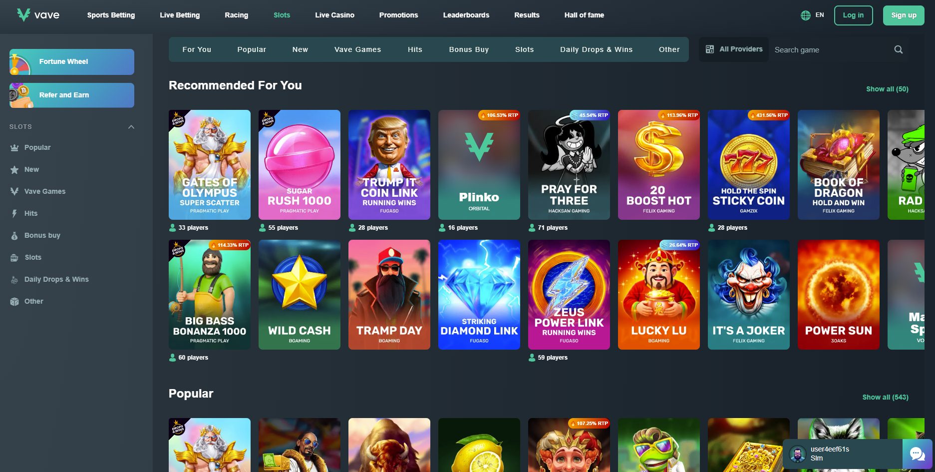 Vave boasts a wide array of game categories to cater to all types of players. Slot players can enjoy an enormous variety of thrilling and themed slot games. Vave also carries some table games, such as traditional games like Baccarat, Roulette, and Blackjack.