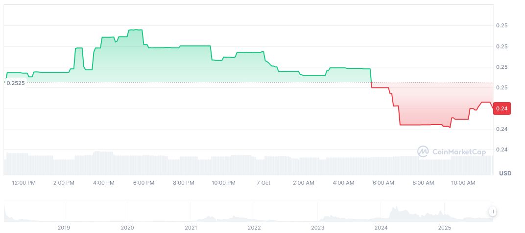 Data from CoinMarketCap shows that SingularityNET (AGIX) is currently priced at $0.25, despite significant market fluctuations. Over the last 24 hours, AGIX fell by 1.36%, though it experienced a 1.63% increase over the past week. This comes as the AI narrative gains momentum but lacks substantial links to Musk’s or xAI’s activities.