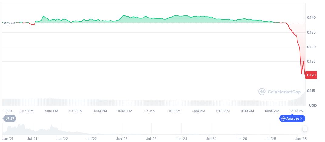 1inch(1INCH), daily chart, screenshot on CoinMarketCap at 12:39 UTC on January 27, 2026. Source: CoinMarketCap