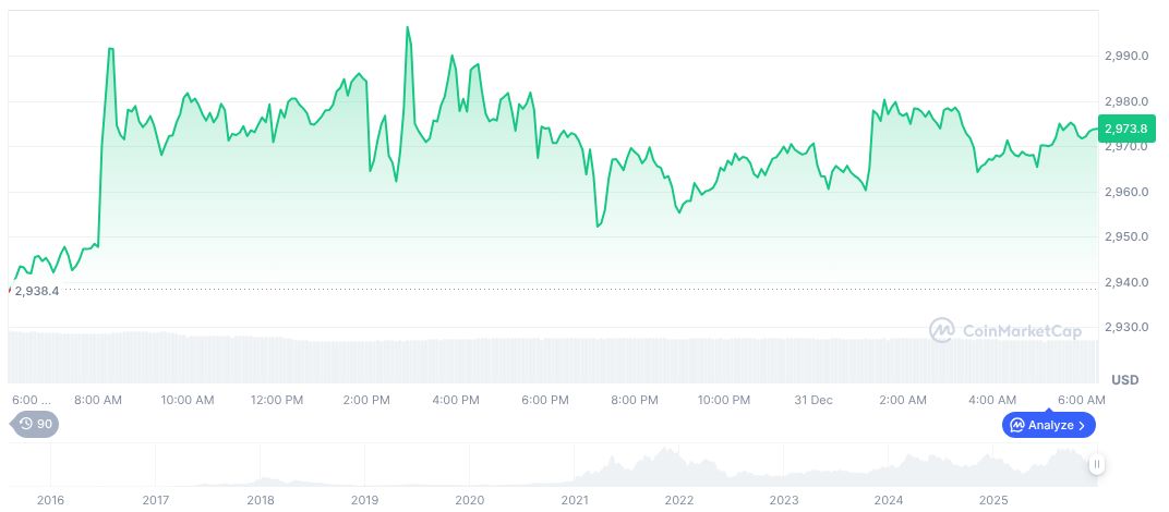 Ethereum is trading at $2,972.31 with a market cap of $358.74 billion, accounting for 12% market dominance. Over the last 90 days, ETH has decreased by 32.13%, according to CoinMarketCap as of December 31.