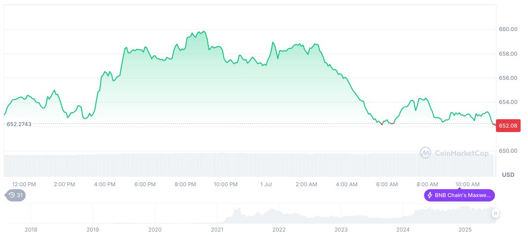 According to CoinMarketCap, BNB witnessed slight changes over recent months, with current price at $651.97 and a market cap of $91.85 billion. Trading volume showed steady activity at over $1.43 billion, with minor price fluctuations noted. The data reflects stable investor interest and market presence of BNB.