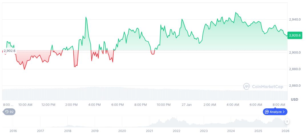 Ethereum (ETH) stood at $2,982.01 on January 27, 2026, with a market cap of approximately $359.91 billion and a 12% dominance in the crypto market, according to data sourced from CoinMarketCap. Trading volumes saw a notable decline of 22.35% over 24 hours.