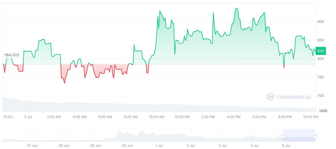 CoinMarketCap data indicates WLFI trades at $791.42, with a stagnant market cap of $791,420.25. The asset showed a 1.24% price increase in the past 24 hours but dropped 66.35% in trading volume to $150,931.89. Notably, WLFI experienced a remarkable 95.58% rise over the last week, reflecting its turbulent market history.
