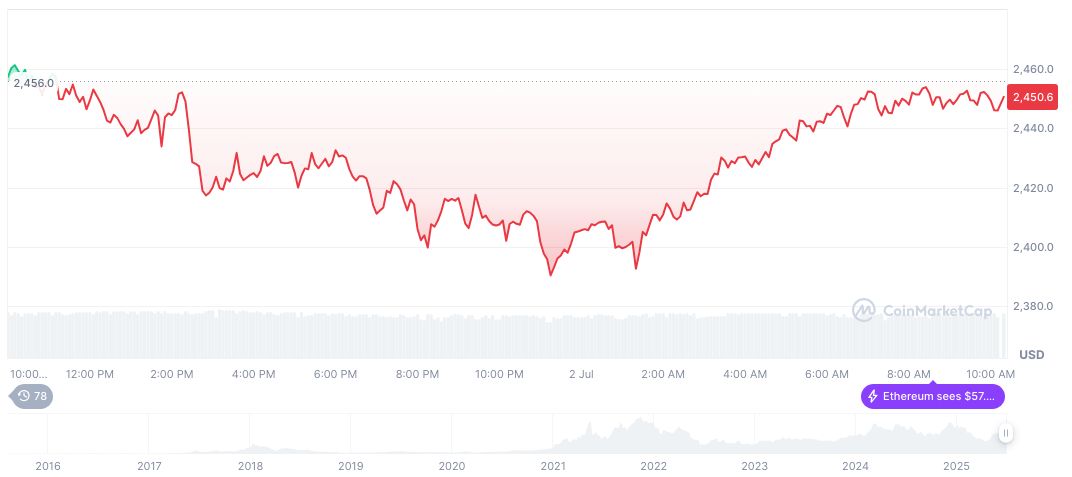Ethereum (ETH) has experienced a 5.51% increase in the past 24 hours, trading at $2,564.05 with a market cap of $309.53 billion, according to CoinMarketCap data at 03:50 UTC on July 3, 2025. ETH saw a trading volume increase of 52.88% within the last 24 hours, indicating heightened market activity.