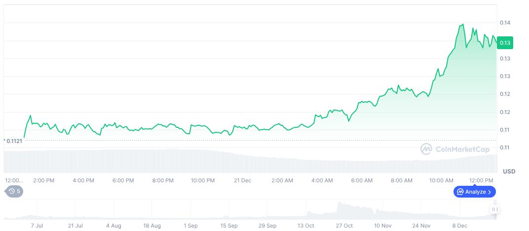 According to CoinMarketCap, Humanity Protocol (H) currently trades at $0.14 with a market cap of $306.72 million and a fully diluted market cap of $1.39 billion. Recent price fluctuations include a 23.99% increase over 24 hours and an 84.44% rise over the past week.
