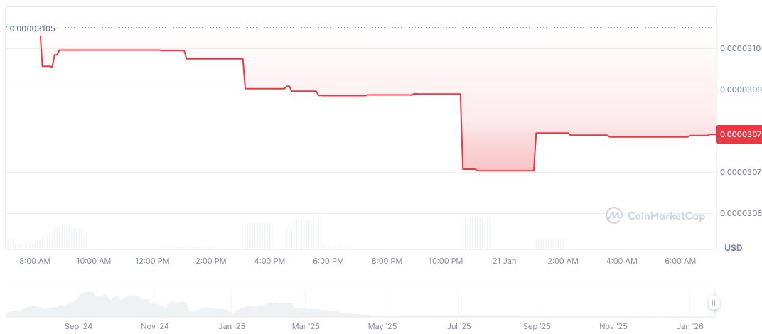 8-Bit Coin (COIN) reported a market cap of $923,734.57, with a recent trading volume of zero, reflecting a complete decrease over the past 24 hours. Its price fell by 0.84% over the last 24 hours, further declining 7.39% in the past week, as per data from CoinMarketCap. The coin, currently trading with no volume, also recorded a price decrease of 3.02% over the last 30 days and 15.86% over the last 90 days.