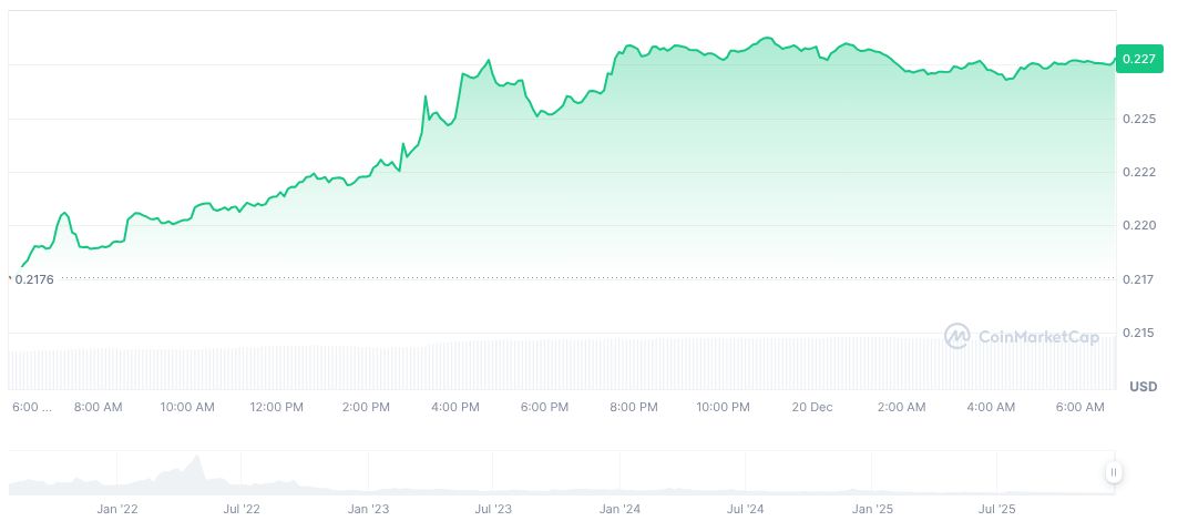 According to CoinMarketCap, Kyber Network Crystal (KNC) v2 is currently priced at $0.23, with a market cap of around $43,946,005. The cryptocurrency has experienced a 3.75% rise in the past 24 hours but has decreased by 37.90% over the last 90 days. Market dynamics reflect ongoing fluctuations, indicating possible investor unease.