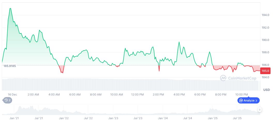 As of the latest data, Aave (AAVE) is valued at $185.03, holding a market cap of formatNumber(2831830909, 2) and 0.10% market dominance. Daily trading volume declined by 21.05%, showcasing a 4.62% dip in 24-hour price. AAVE’s price trends remain volatile amid governance debates, highlighting an ongoing 90-day decline of 39.61%, as per CoinMarketCap.
