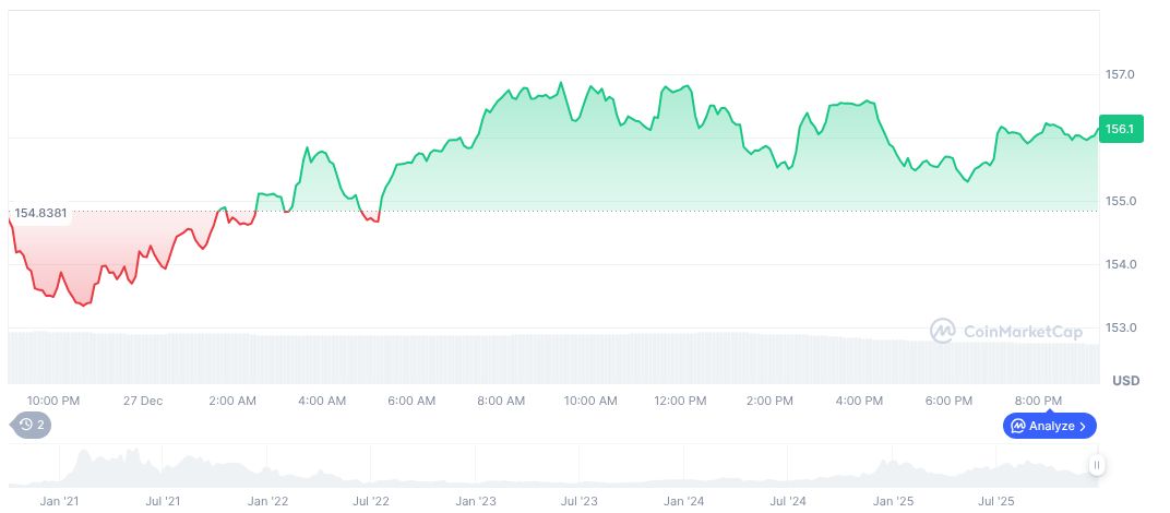 As of December 2025, Aave’s (AAVE) current price is $156.11 with a market cap of $2.39 billion and a trading volume of $265.28 million, a 23.04% decrease. The token’s price decreased 42.41% over 90 days, according to CoinMarketCap.