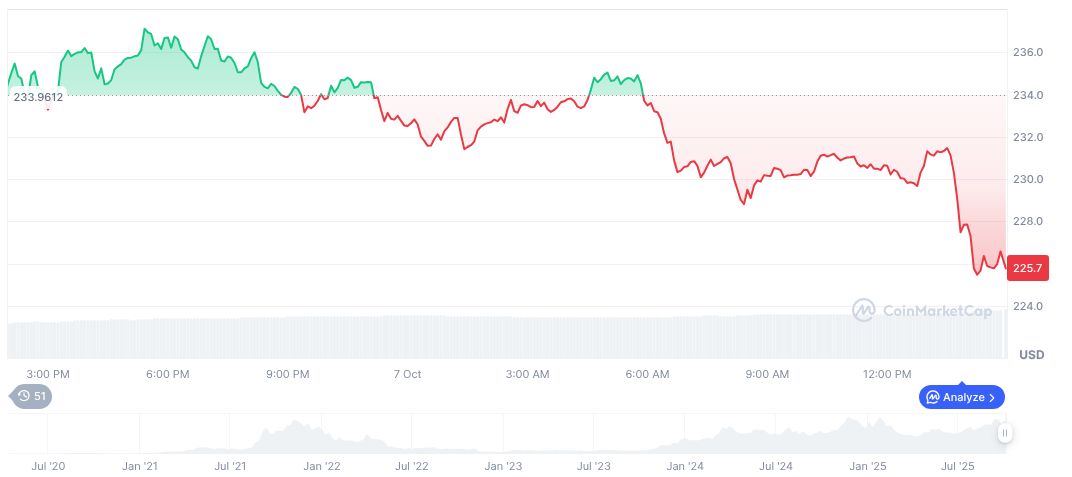 According to CoinMarketCap, Solana’s (SOL) market dynamics reveal a market cap of $123.52 billion, with a recent 24-hour price drop of 3.31%, despite an upward 90-day surge of 47.59%. The trading volume reached $8.45 billion, observed at 14:54 UTC on October 7, 2025.
