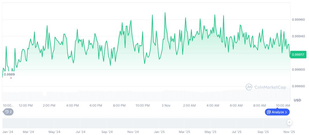 Ethena’s USDe maintains a stable price at $1.00 despite recent volatility. Its 24-hour trading volume saw a significant increase of 53.55% to $210.47 million, while circulating supply reached 9.27 billion. USDe’s performance remains a focal point, as compiled by CoinMarketCap.