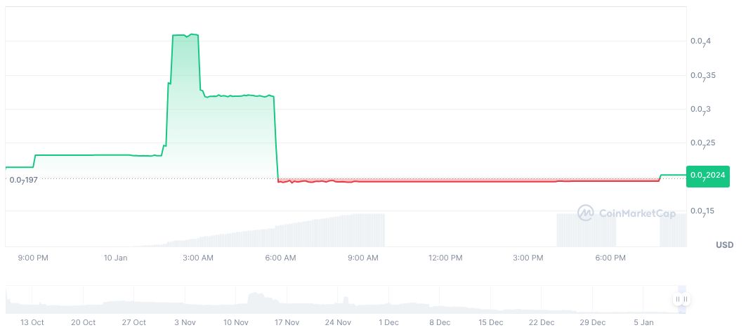 According to CoinMarketCap, Upwego (UP) is currently priced at $0.00, with a fully diluted market cap of $20,240.28. The 24-hour trading volume stands at $10,563.11, registering a 4319.89% jump from the previous figures. Changes over the past 90 days show an 87.30% decline.
