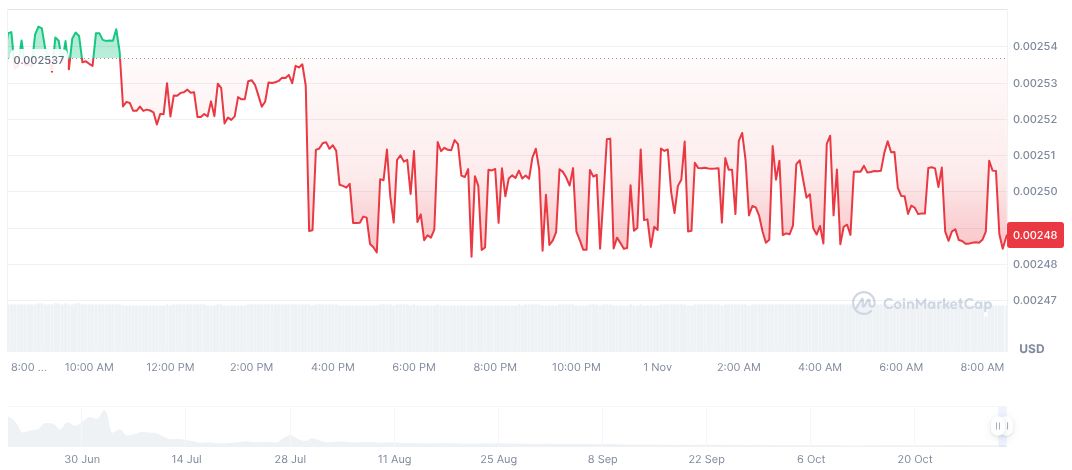 Vibe Cat’s VIBE token, according to CoinMarketCap, is currently valued at $0.00 with a market cap of $198,953 and a small market dominance of 0.00%. Over the past 24 hours, the trading volume was $196,240, reflecting a slight decrementation of -1.95%. The token price experienced fluctuations, with a notable 76.46% drop over the last 90 days.