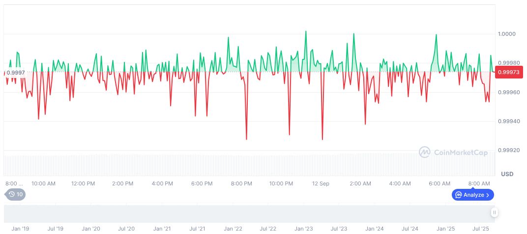 USDC(USDC), daily chart, screenshot on CoinMarketCap at 08:43 UTC on September 12, 2025. Source: CoinMarketCap