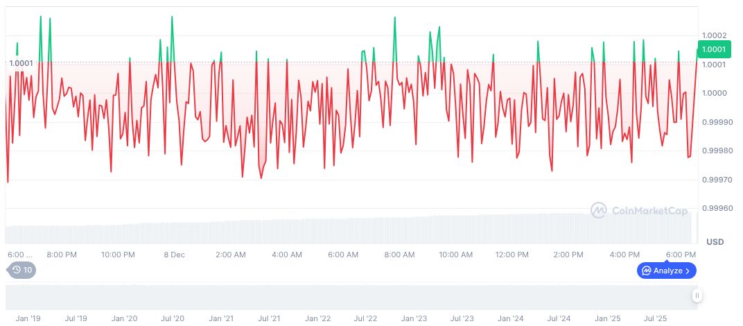 USDC currently has a market cap of approximately 78.17 billion dollars, holding a market dominance of 2.53%. The stablecoin’s 24-hour trading volume has surged by 79.33%, as reported by CoinMarketCap, indicating heightened market activity surrounding this mint on December 8, 2025.