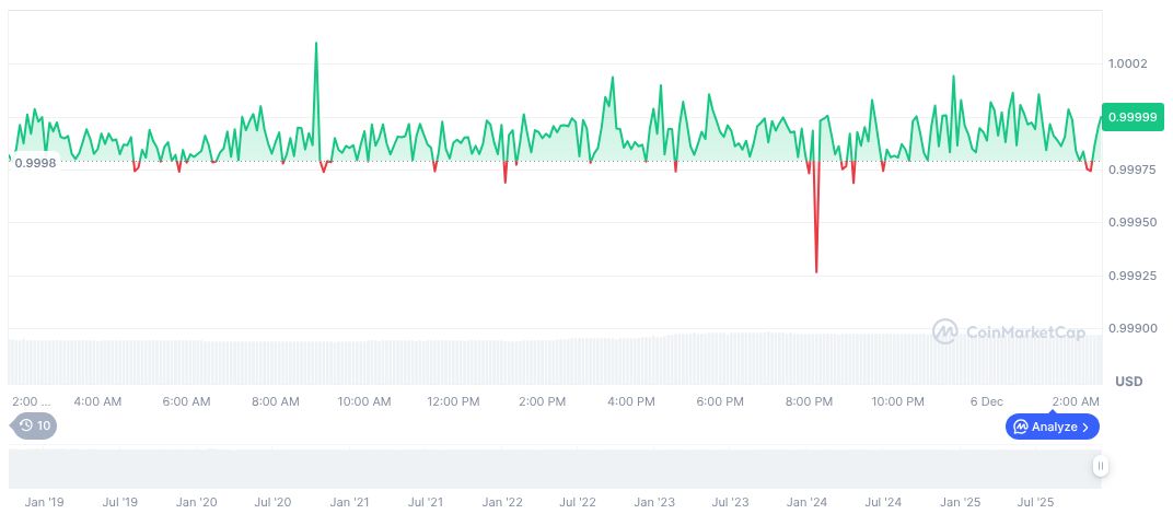 USDC trades at $1.00, with a market cap of 78.14 billion and dominance of 2.56%, per CoinMarketCap. The 24-hour trading volume is 12.29 billion, reflecting a 10.14% change. USDC’s circulating supply is 78.16 billion, last updated on December 6, 2025.