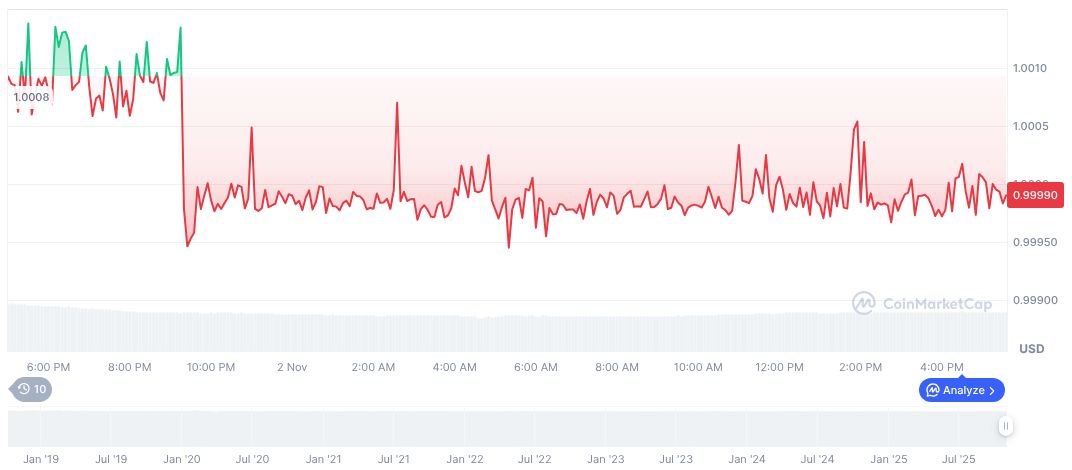 USDC, standing at $1.00 with a market cap of $75.82 billion, dominates 2.05% of the crypto market, according to CoinMarketCap. Over the past 90 days, USDC’s price inched down by 1.22%, amidst a 15.18% drop in trading volumes to $8.73 billion. These metrics show its resilience amid fluctuating market conditions.
