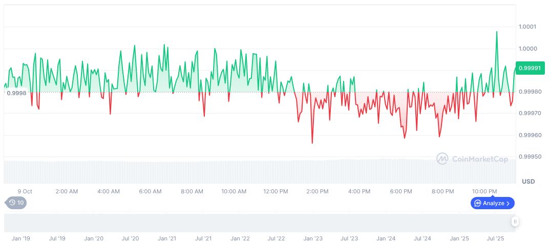 USDC(USDC), daily chart, screenshot on CoinMarketCap at 23:24 UTC on October 9, 2025. Source: CoinMarketCap