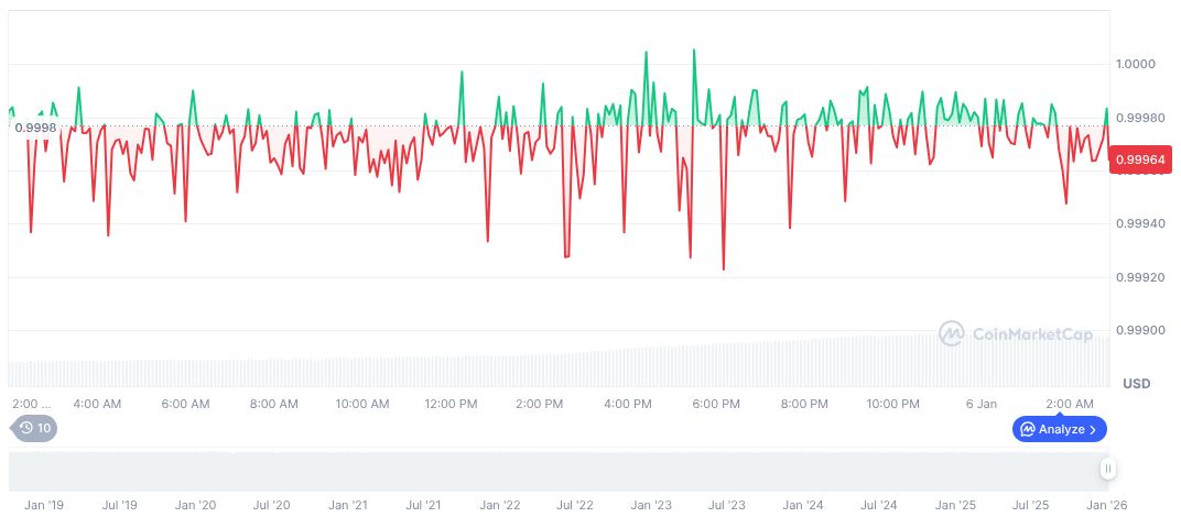 USDC, a prominent stablecoin, maintains a stable value of $1.00 with a market cap nearing $75.72 billion, securing a 2.39% market dominance. Over the past 90 days, it experienced a slight decrease of 0.03% according to CoinMarketCap, indicating modest volatility in its valuation amid sector discussions.