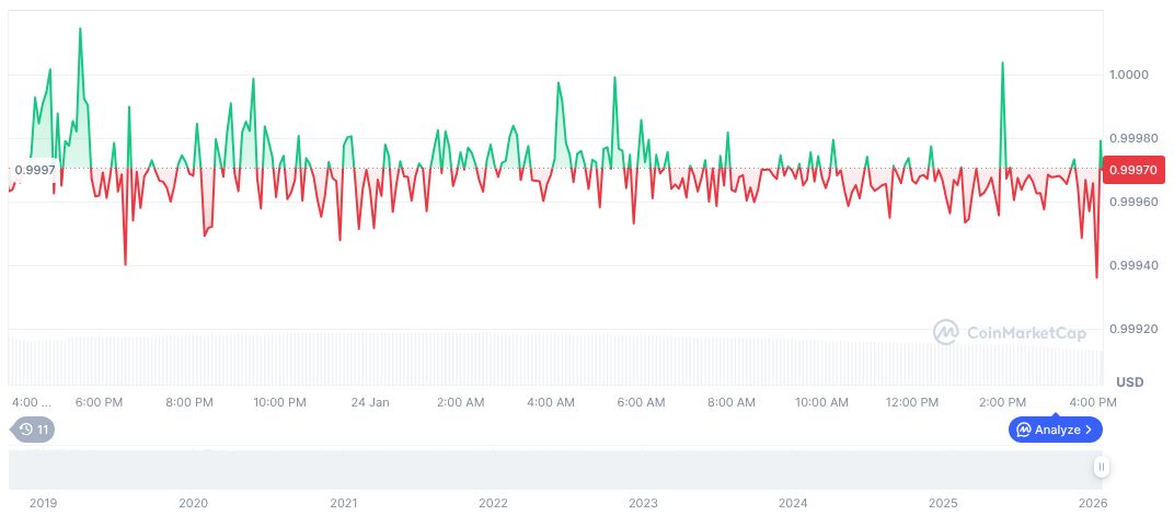 As of January 24, 2026, USDC remains a significant player in the crypto landscape, with a market cap of $72.64 billion, according to CoinMarketCap. While its price stayed stable at $1.00, a decline in 24-hour trading volume by 26.47% to $9.71 billion was observed. Circulating supply reached 72.66 billion tokens without a fixed maximum limit.