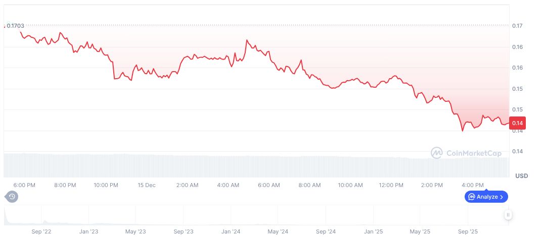 CoinMarketCap reports that Terra (LUNA) is currently priced at $0.15 with a market cap of $104.16 million and a 24-hour trading volume decrease of 18.06%. The circulating supply stands at 709,984,439 with an infinite max supply. The last day saw a 13.48% price decline, though the 7-day period experienced a 45% increase, and has risen 80.81% over the past month.