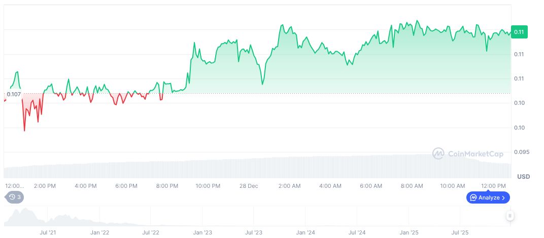 Flow (FLOW) is currently valued at $0.11, maintaining a market cap of $179.08 million. Despite a significant 1.42% rise in the last 24 hours, reflecting slight recovery post-incident, the coin suffers from a historical 53.22% drop over 30 days, as noted by CoinMarketCap.